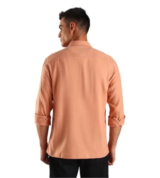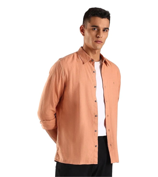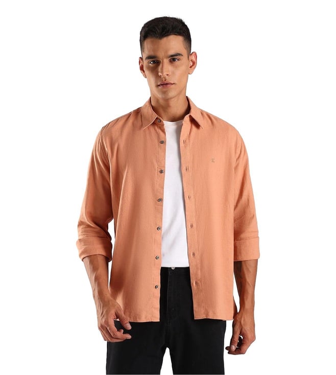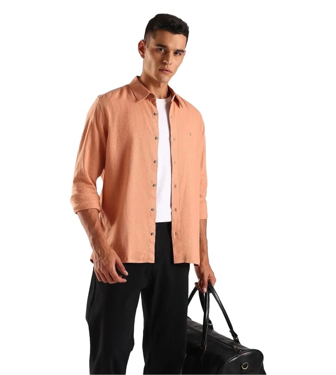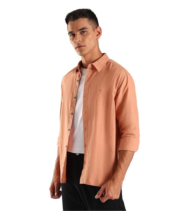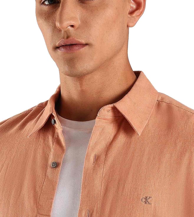 CALVIN KLEIN JEANS Peach Linen Regular Fit Shirt