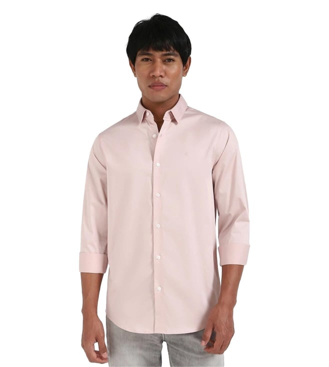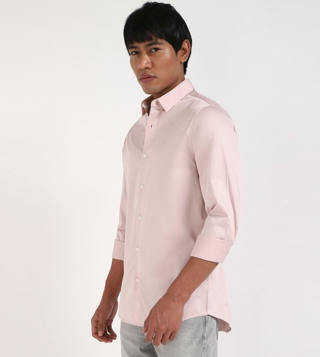 Fascinate one and all with this pink slim fit shirt from Calvin Klein Jeans, that will add a dash of extra charm to your look. Tailored to sartorial perfection from premium quality fabric, it assures a soft and soothing touch against the skin. The shirt collar adds to its appeal.