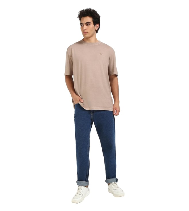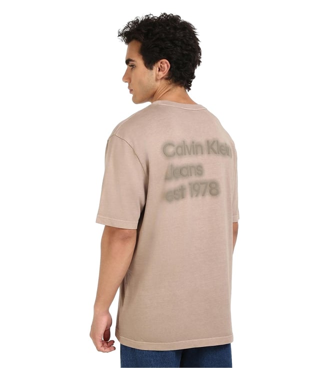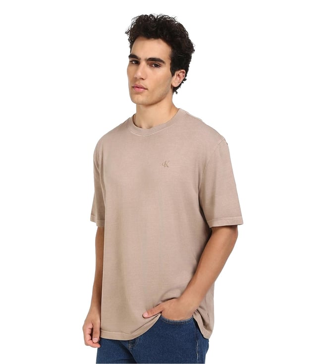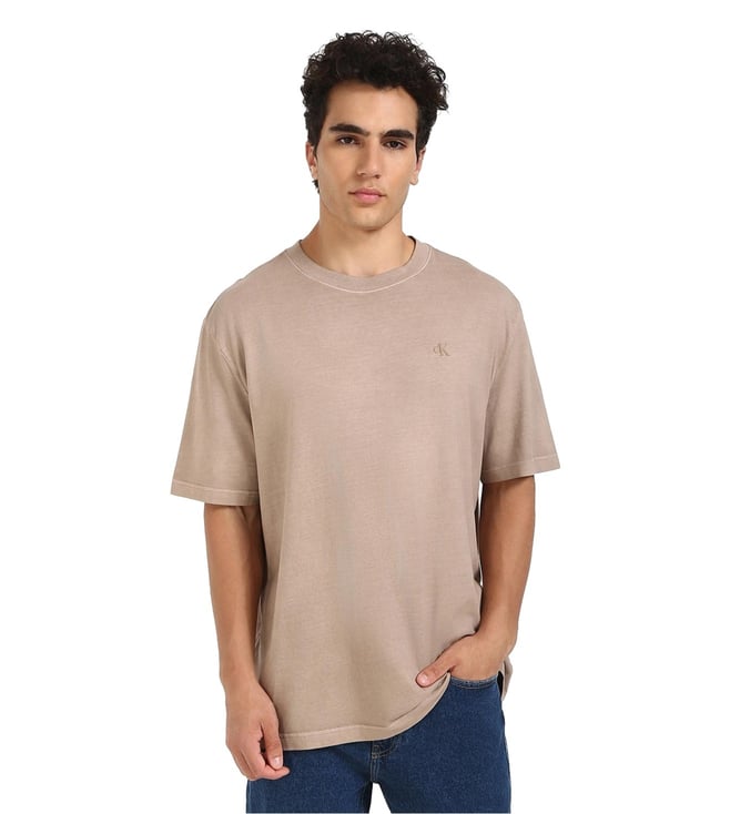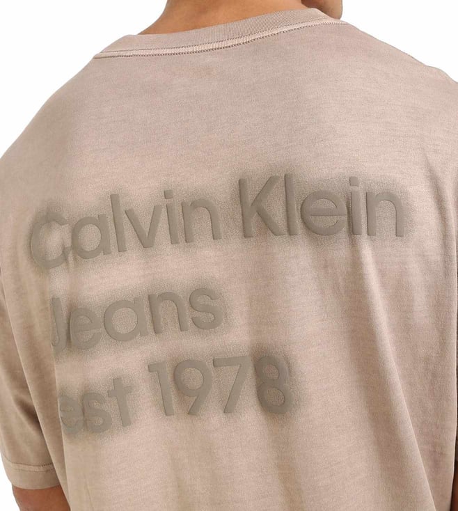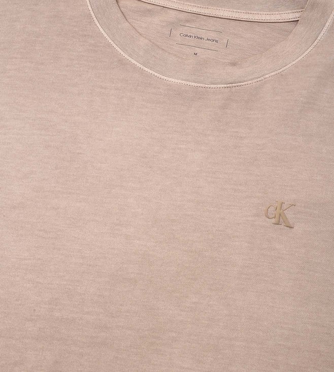 CALVIN KLEIN JEANS Taupe Grey Cotton Regular Fit T-Shirt
