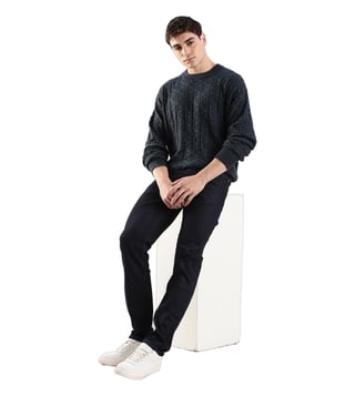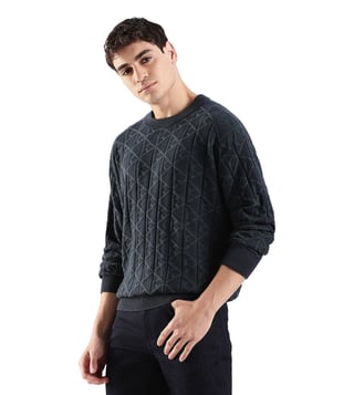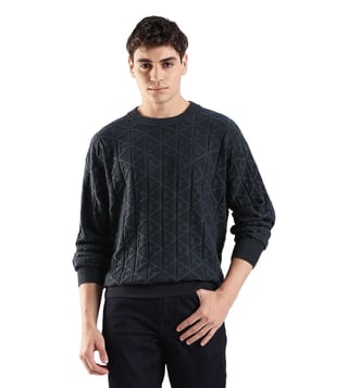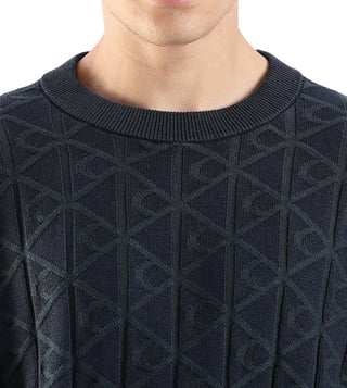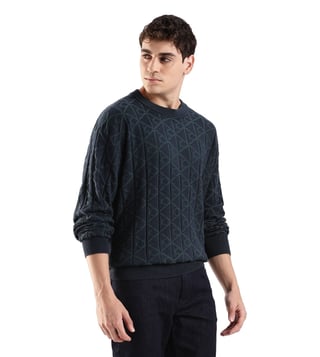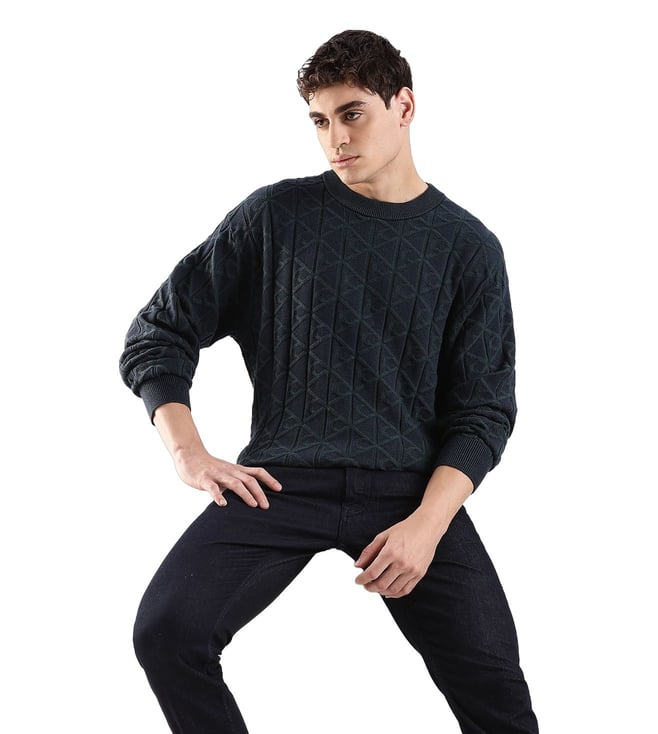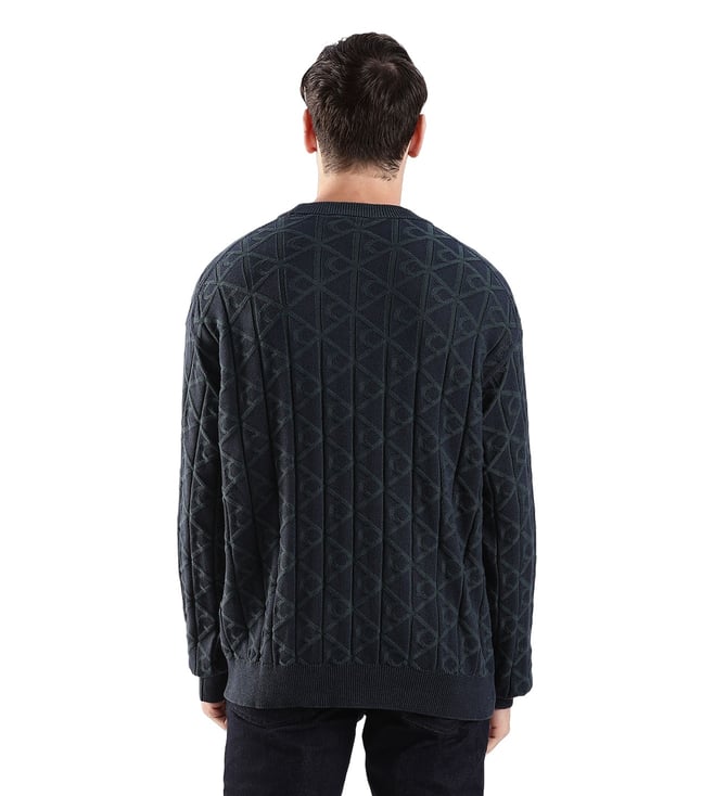 CALVIN KLEIN JEANS Teal Cotton Comfort Fit Texture Sweater