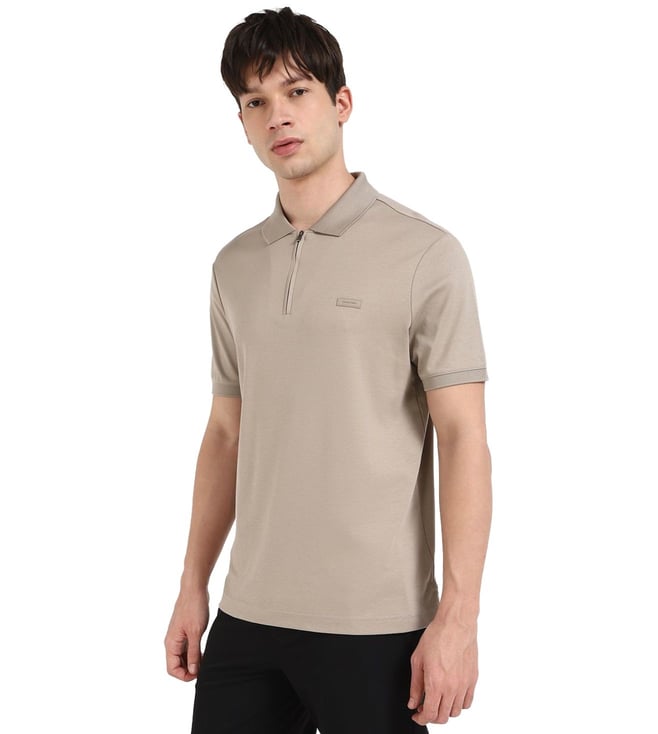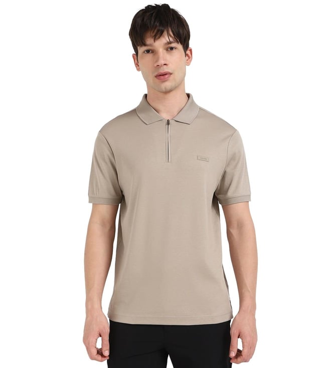 Elevate your casual wardrobe with the Calvin Klein Jeans Vintage Khaki Regular Fit T-Shirt. Crafted from soft cotton, this versatile tee is perfect for daily wear. The classic short sleeves and polo collar add a touch of sophistication to any outfit. Whether you are running errands or meeting friends for brunch, this timeless piece will keep you looking effortlessly stylish. Upgrade your basics with this must-have wardrobe essential.