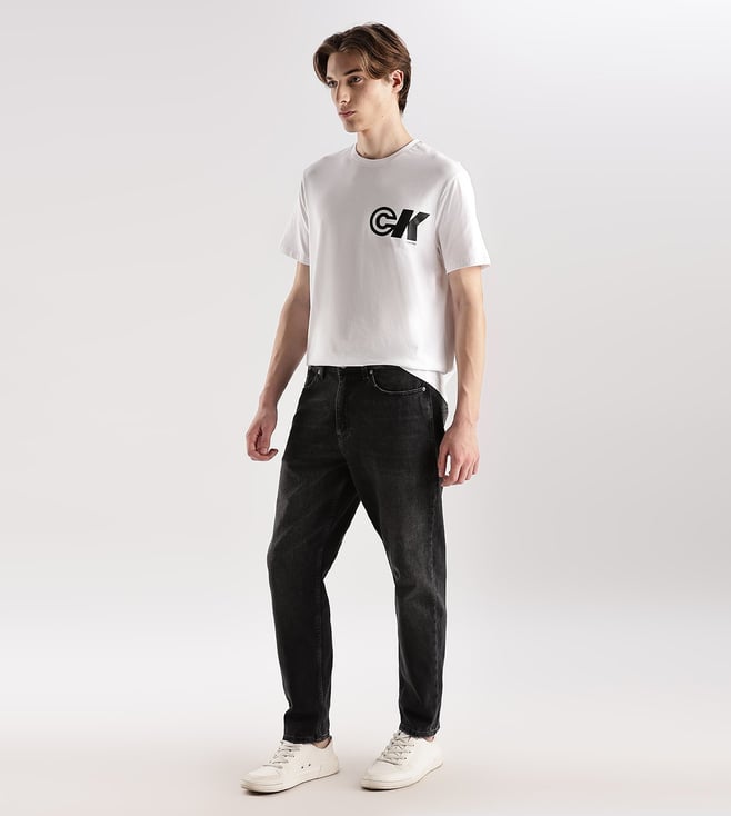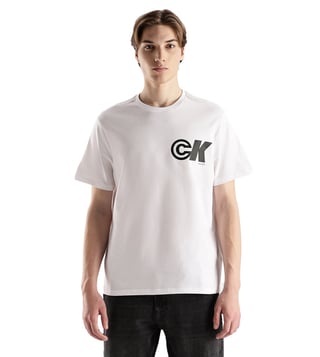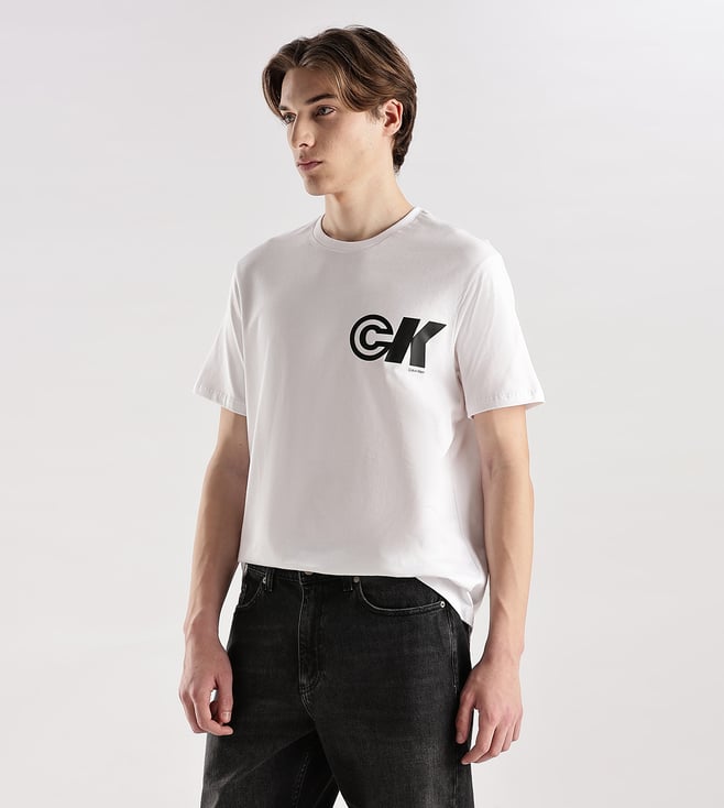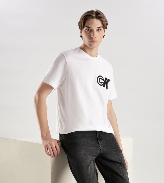 CALVIN KLEIN JEANS White Cotton Regular Fit Printed T-Shirt
