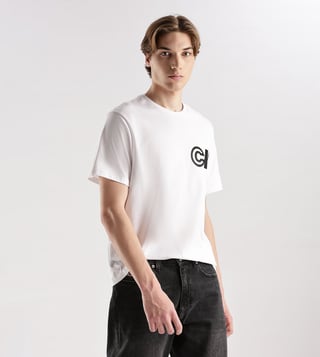 Elevate your casual wardrobe with this eye-catching white T-shirt from our men's collection. Crafted from soft, breathable cotton using a knitted construction technique, this western-inspired tee features a bold logo pattern that adds a touch of personality to your look. Perfect for laid-back occasions, this versatile piece effortlessly combines comfort and style. The logo design makes a statement while maintaining a relaxed vibe, ideal for your everyday adventures. Pair with your favorite jeans or shorts for an effortlessly cool ensemble that's ready for whatever the day brings.