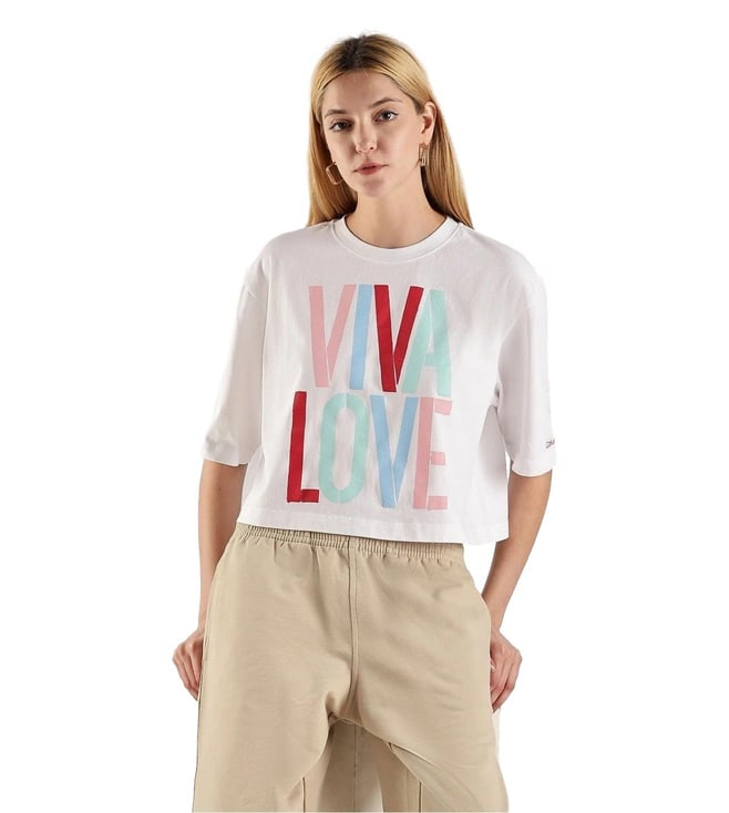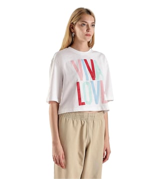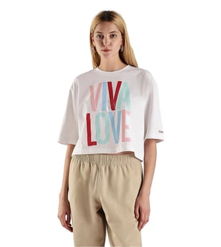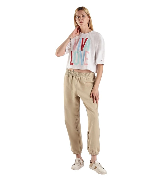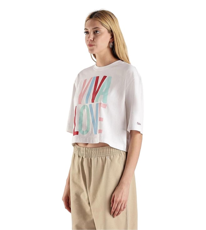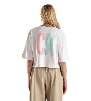 CALVIN KLEIN JEANS White Cotton Regular Fit Printed T-Shirt
