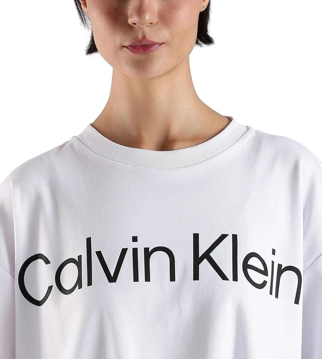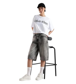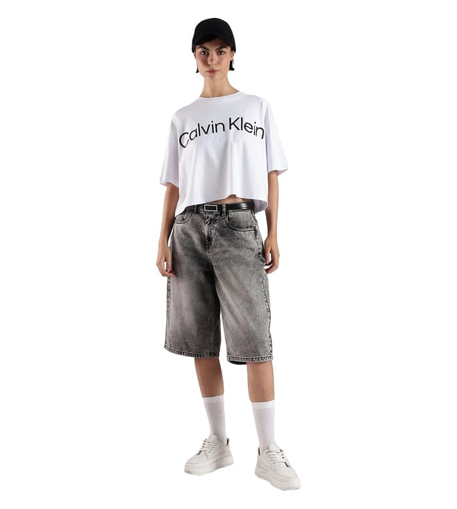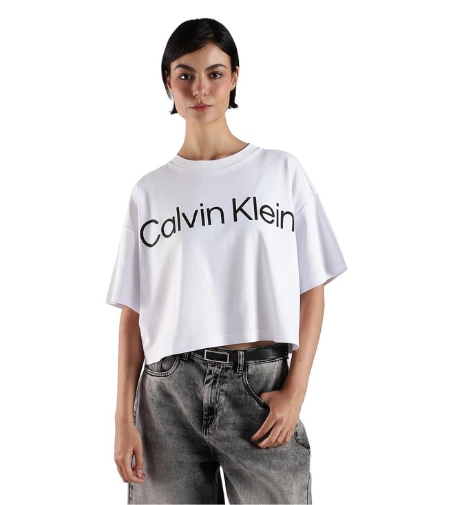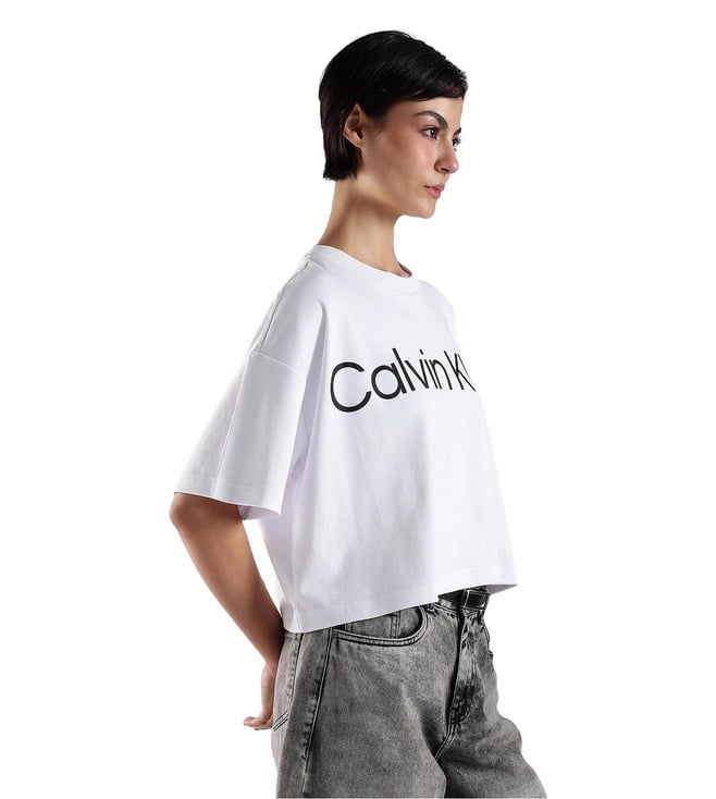 CALVIN KLEIN JEANS White Cotton Relaxed Fit Logo Printed T-Shirt