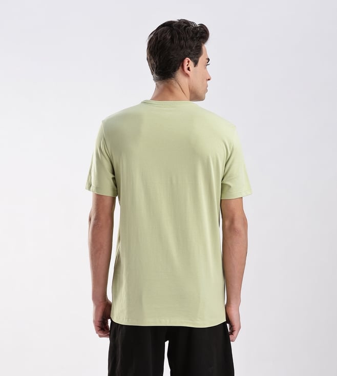 Stand out in this vibrant yellow T-shirt from the U.S. collection. Designed for men who love to make a statement, this regular fit tee features an eye-catching logo pattern. Perfect for casual occasions and basic-casual activities, it's a fun addition to your wardrobe. Pair with dark jeans for a bold, contrasting look.