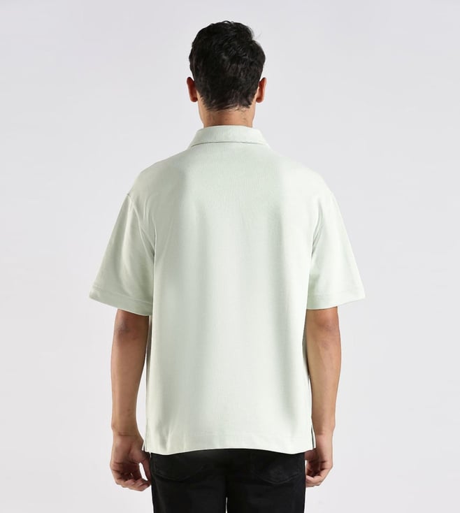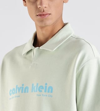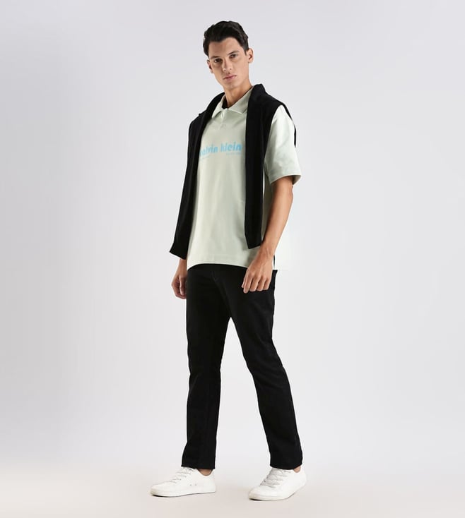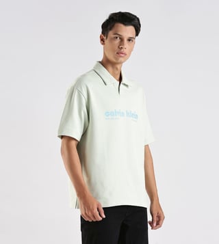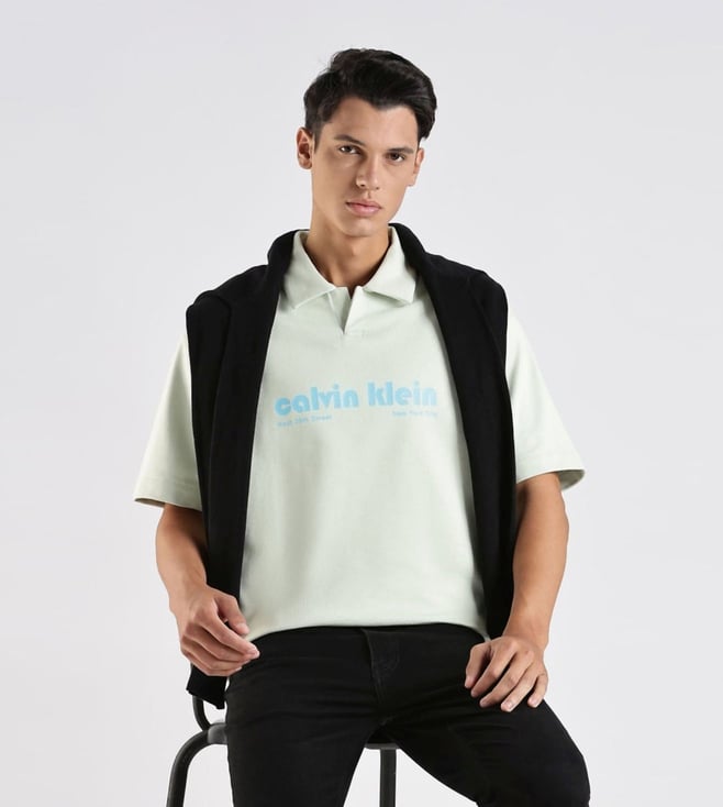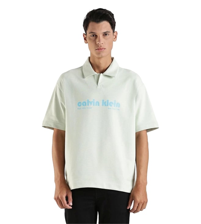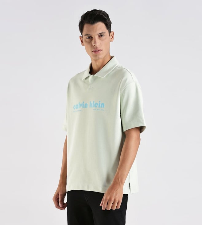 CALVIN KLEIN Light Green Logo Oversized Fit Cotton Polo T-Shirt