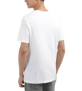 Sophisticate your wardrobe with this t-shirt from Calvin Klein. The regular fit offers a symmetrical aesthetic appeal. It delivers a clean and well-proportioned look without seeming too baggy or snug. Team it with different pieces of clothing and your choice of accessories.