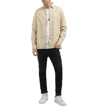 CALVIN KLEIN JEANSCalvin Klein Mens Pale Khaki Solid Update Regular Shirt