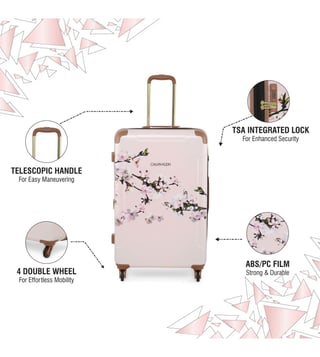 The Calvin Klein in bloom 28 inches hard off-white luggage must be the next addition to your luggage collection. An eye-grabbing innovative finishing sets the tone for every trip you take. Constructed of abs film the in bloom range provides strength, lightweight and durability to give your belongings the best in protection with style. Sitting pretty on spinners, this hardside puts no weight on your arm and opens up to a fully-lined interior with a zippered compression panel and cross straps to keep your clothes in order. Choose the one that reflects your personality.