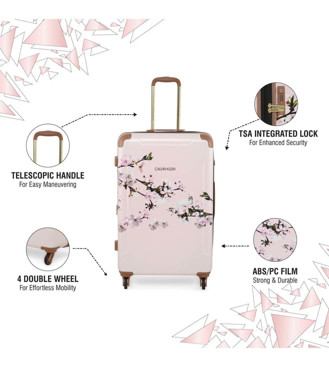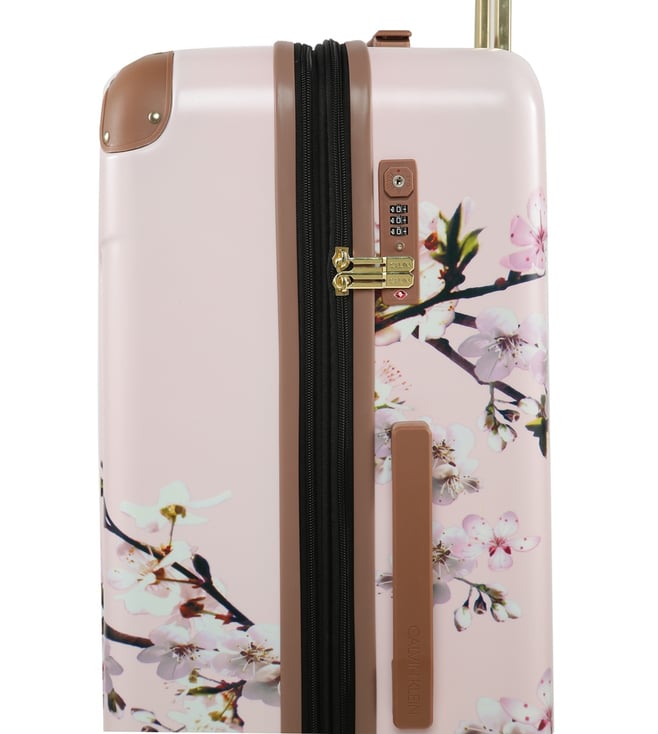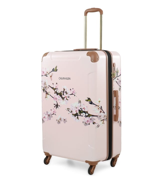 CALVIN KLEIN Off White In Bloom Printed Large Hard Case Checked Luggage