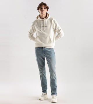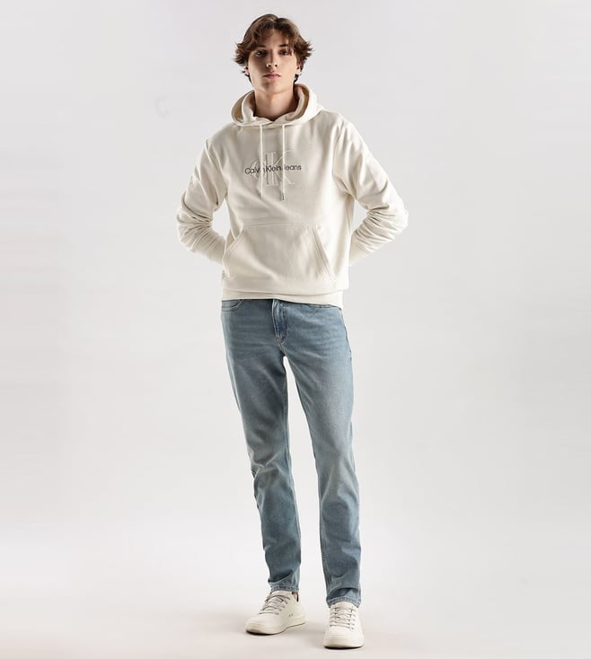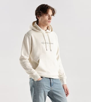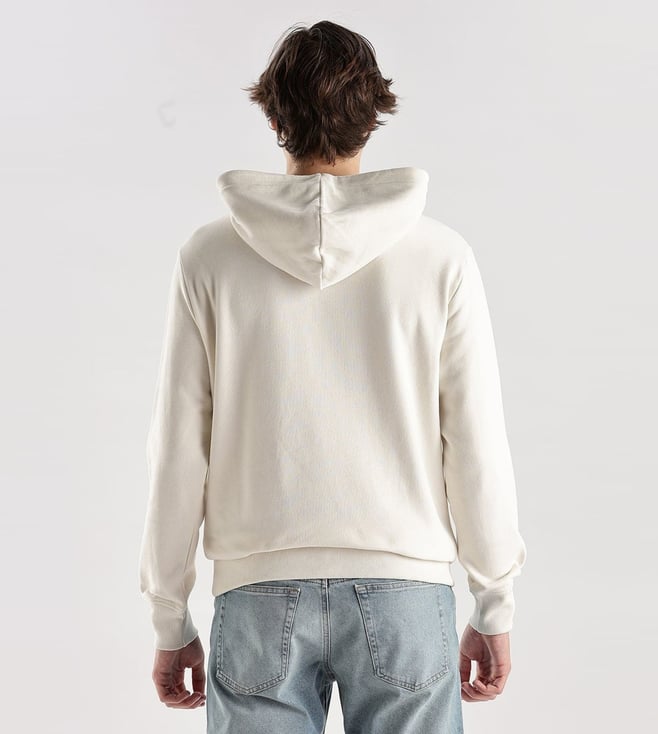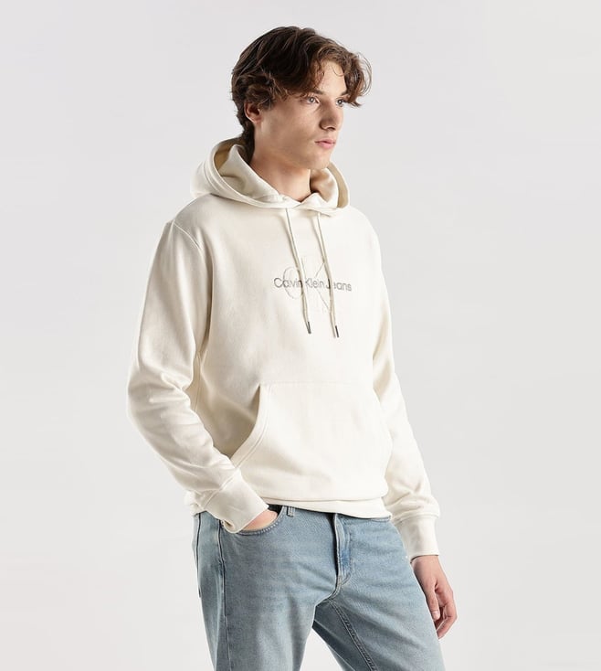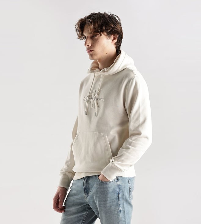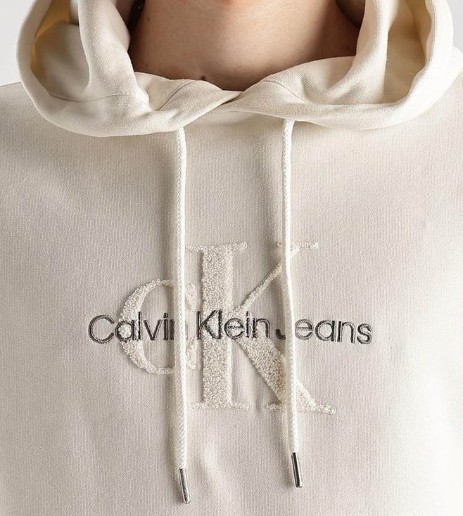CALVIN KLEIN Off-White Logo Regular Fit Cotton Hoodie