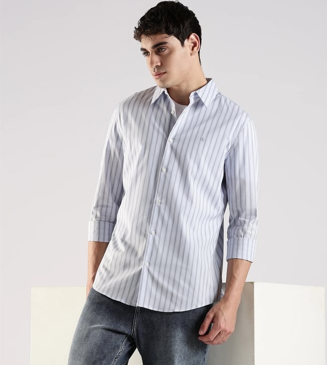 White Cotton Slim Fit Striped Shirt