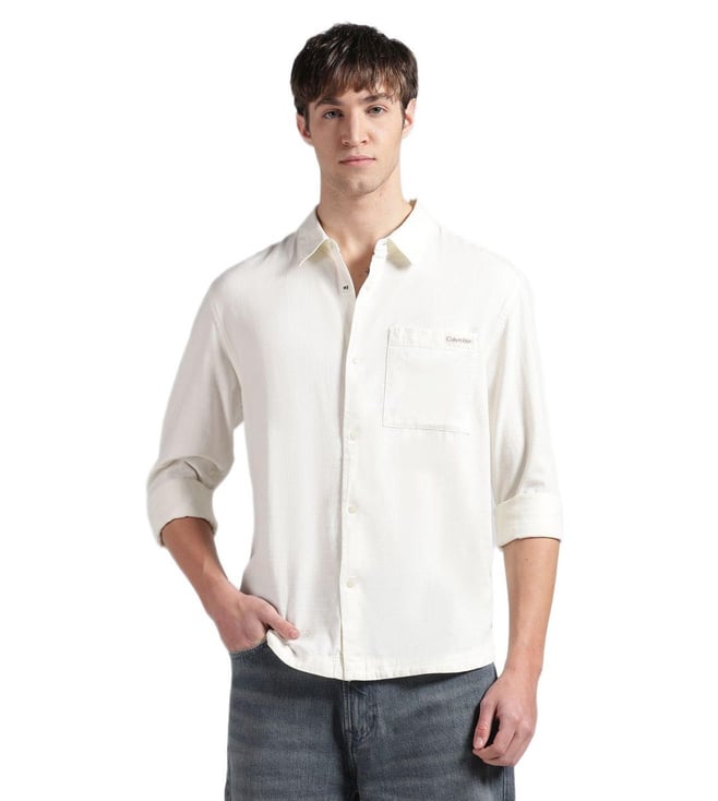 Off White Cotton Regular Fit Shirt