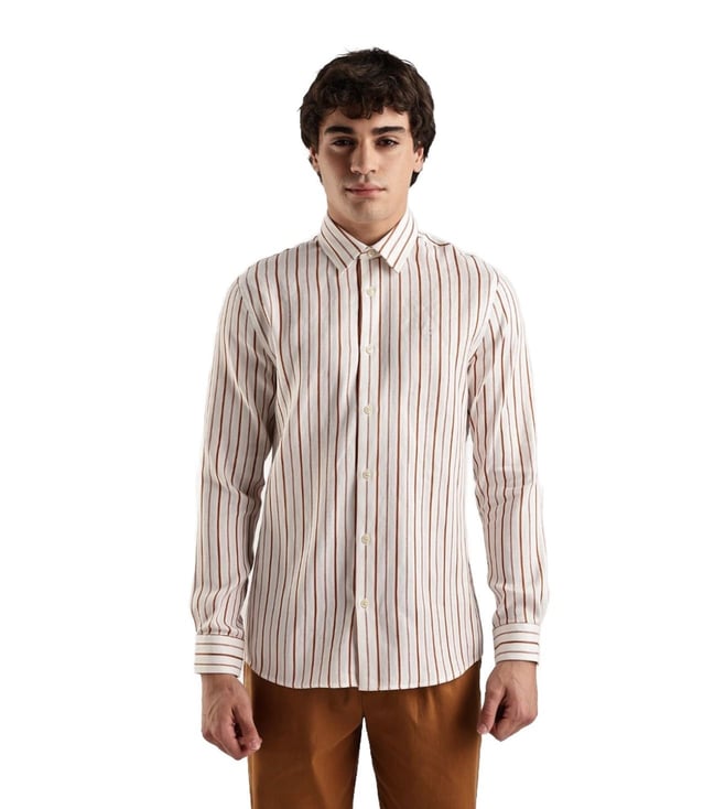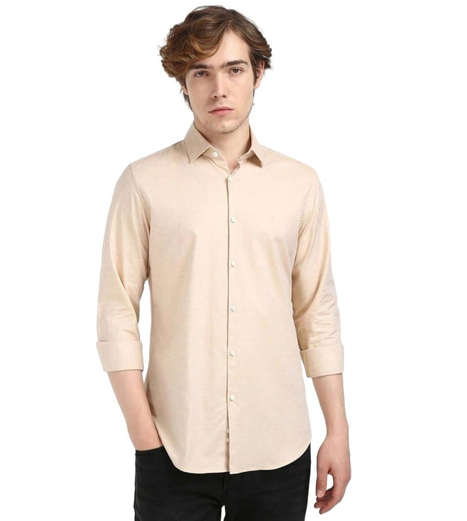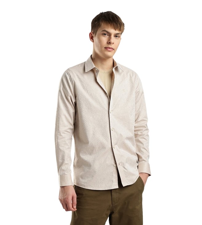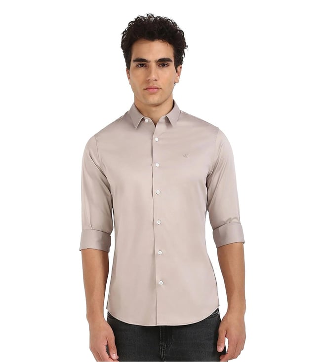 CALVIN KLEIN Men's Plaza Taupe Checks Slim Fit Shirt