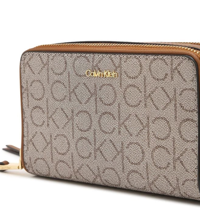 CALVIN KLEIN Taupe Logo Medium Cross Body Bag