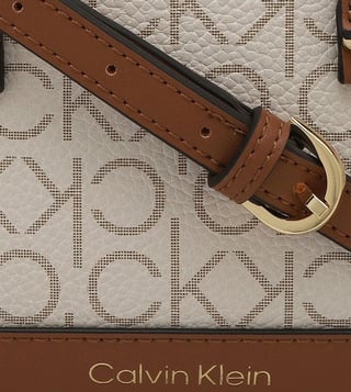 Elevate your style with the Calvin Klein vanilla & caramel logo medium satchel. This chic satchel combines classic design with a modern twist, featuring a luxurious vanilla and caramel color palette and the iconic ck logo. With a spacious interior and multiple pockets, this bag is perfect for on-the-go essentials. The high-quality materials and craftsmanship ensure durability and style that will last. Make a statement with this versatile satchel that effortlessly transitions from day to night, adding a touch of sophistication to any outfit.