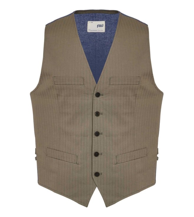 Beige Herringbone Self Tailored Fit Waistcoat