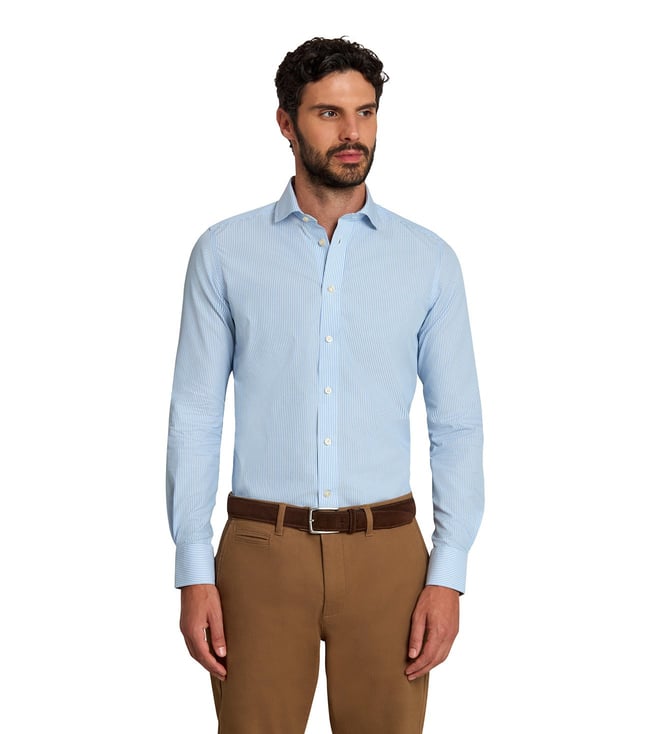 Light Blue Non-Iron Permanent Press Striped Slim Fit Shirt