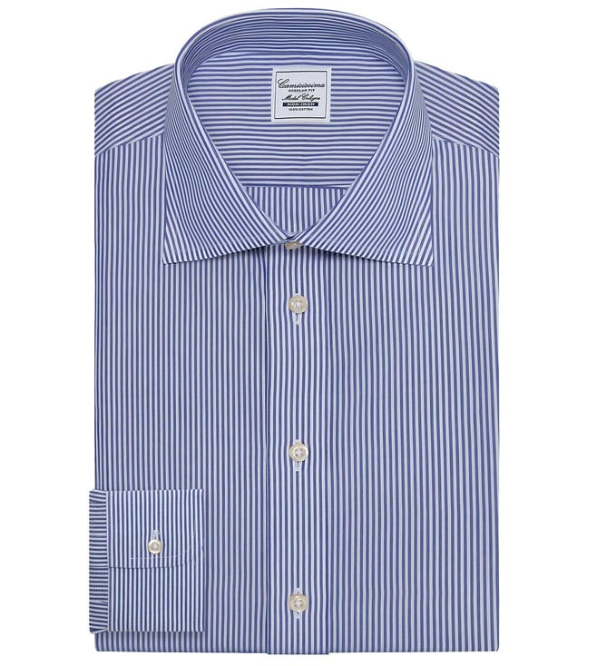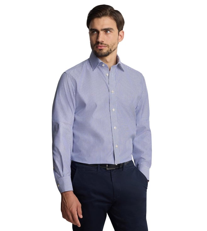 Blue Non-Iron Permanent Press Striped Regular Fit Shirt