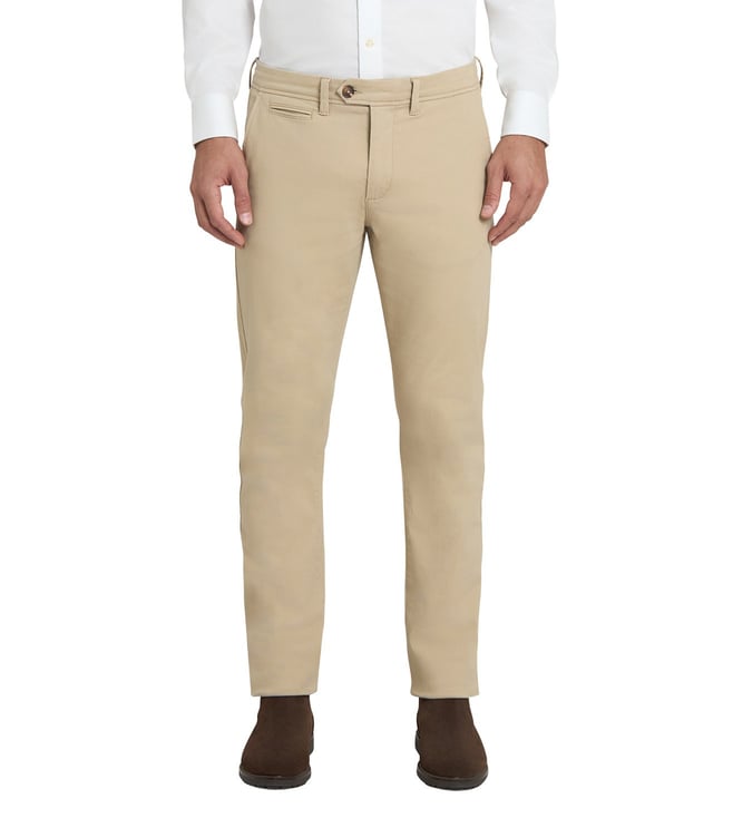 Straight Beige Twill Mid Rise Chinos