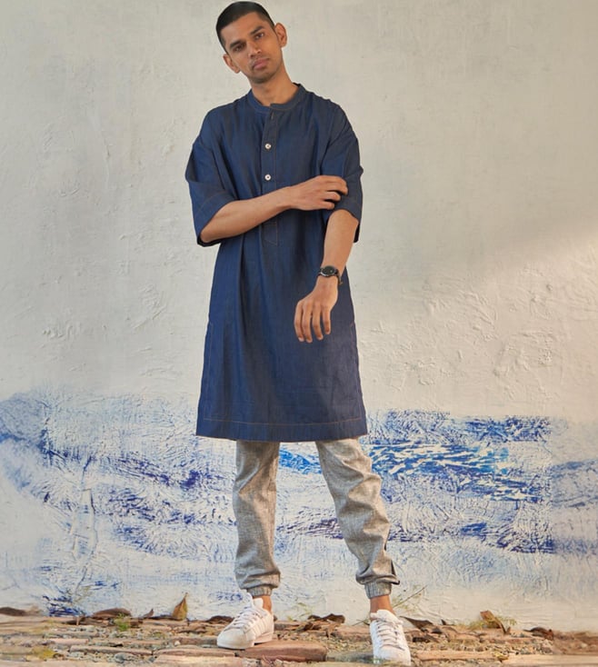 Blue Denim Fusion Long Kurta With Jogger