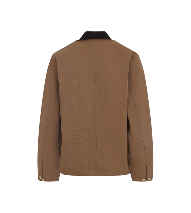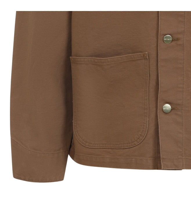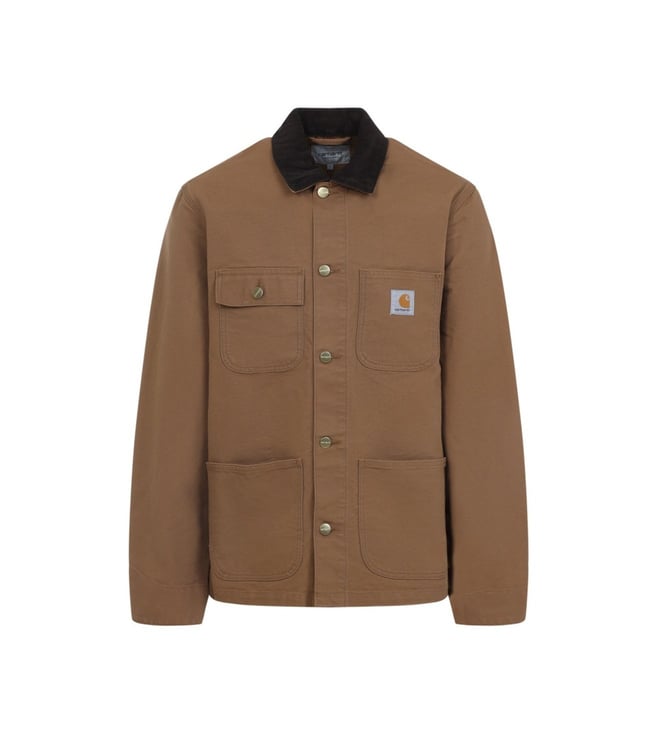 Elevate your style with the Carhartt Brown Regular Fit Jacket. Men's jacket with regular fit. Corduroy collar, button closure and carhartt square label woven on the pocket.