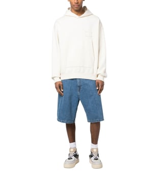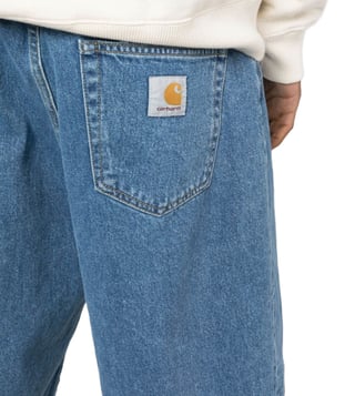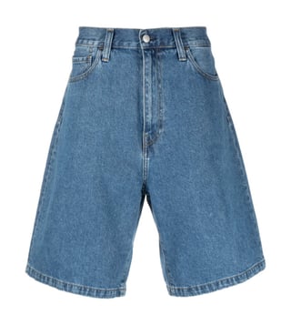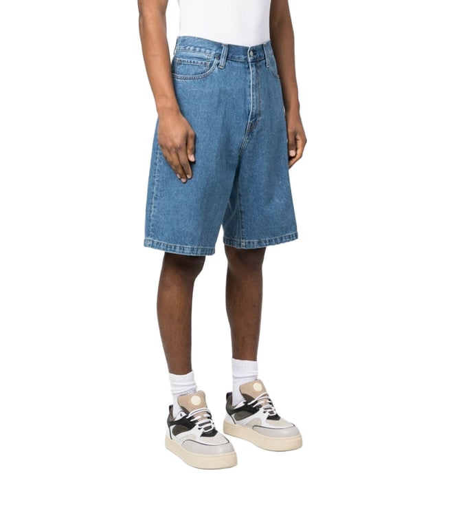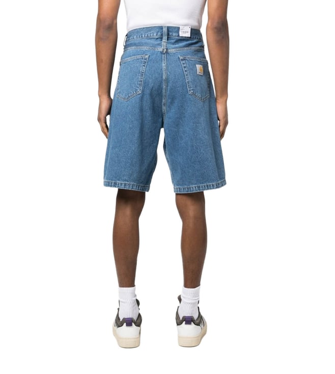 Elevate your style with the Carhartt Wip Blue Regular Fit shorts. Logodetail denim shorts from carhartt wip featuring washed denim, logo patch to the rear, front button and zip fastening, classic five pockets, kneelength, blue, cotton and belt loops. this piece fits true to size. recommend you get your regular size model is 1,84m / 6ft 1in wearing size 32 (waist cm)