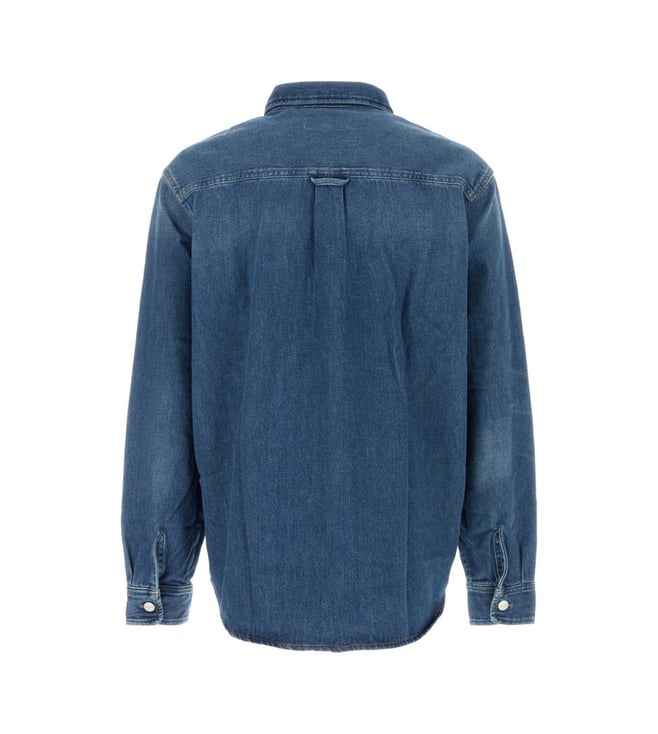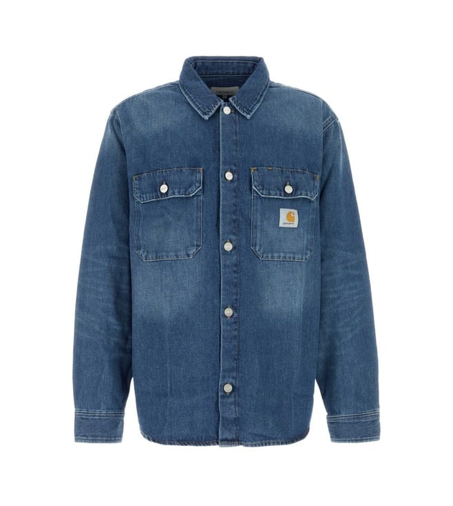 Elevate your style with the Carhartt Wip Blue shirt. Blue cotton denim logo patch on the chest contrast stitching coat rack loop pleated details classic collar button closure at the front long sleeves button cuffs two breast pockets with button closure unlined rounded hem.