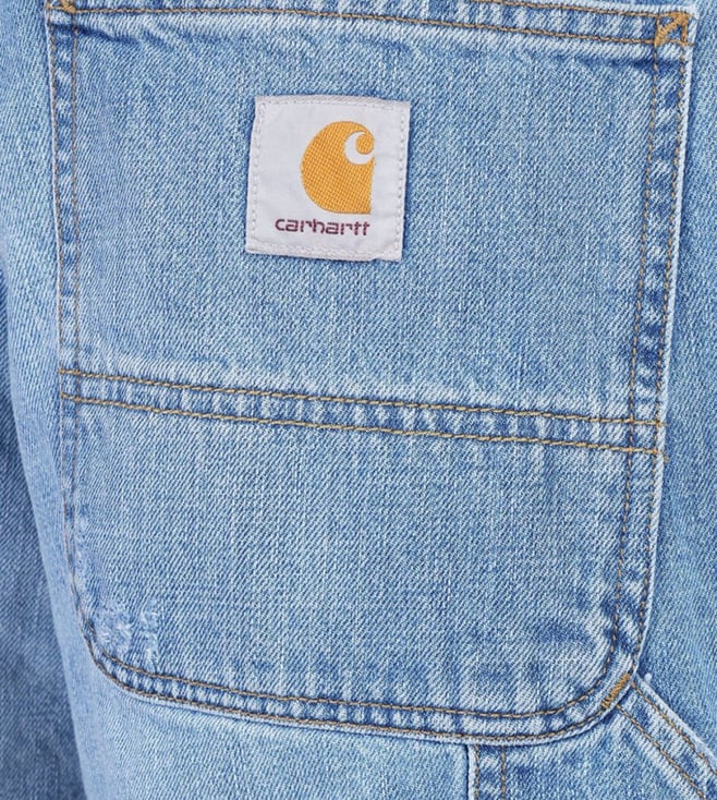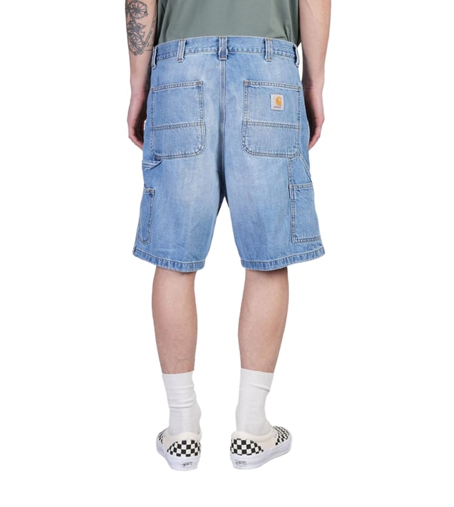 Elevate your style with the Carhartt Wip Navy Blue Relaxed Fit shorts. Regular waist belt holes button and zip closure side pockets side tool strap back logo label back pockets back workwear pockets relaxed fit Crafted for durability and comfort.