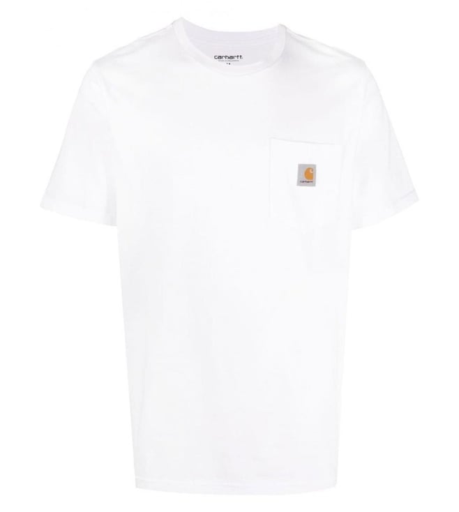 Elevate your style with the Carhartt Wip White Regular Fit t-shirt. Logopatch cotton t-shirt from carhartt wip featuring white, cotton, jersey knit, logo patch at the chest, chest patch pocket, crew neck, short sleeves and straight hem. This piece fits true to size. recommend you get your regular size. Products purchased from Darveys are supported exclusively by the warranty/exchange policies of Darveys and its partner boutiques. Brand owners and their channel partners are not responsible for exchange/warranty services for items purchased through Darveys.
