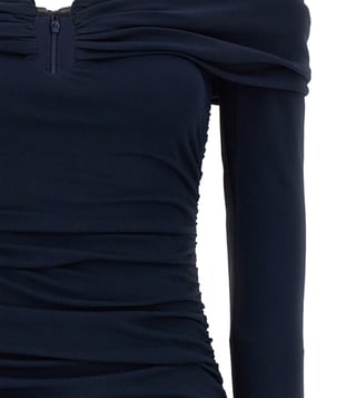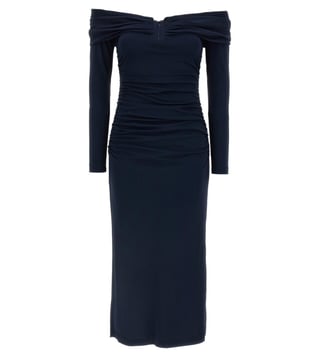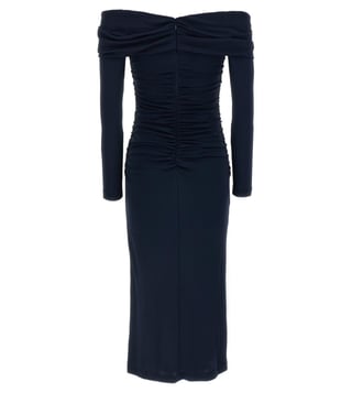 Carolina Herrera Blue Off-Shoulder Ruched Midi Dress