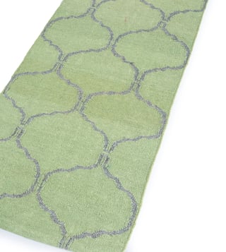 A symphony of emerald hues, this Jaipur rug transforms your living room or bedroom into a tranquil oasis. Woven from a blend of luxurious wool and viscose, its intricate design features delicate floral motifs and subtle geometric patterns, adding a touch of sophistication to any space. The runner's generous 2'6x8 feet dimensions create a striking focal point, while its lightweight 2.2 kg construction allows for easy movement and placement. Embrace the serenity of nature with this captivating green runner, a timeless piece that will elevate your home decor.