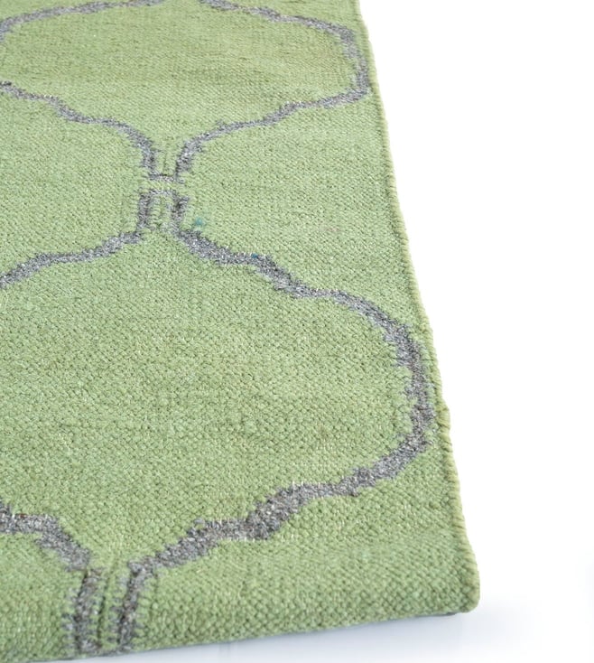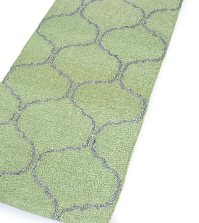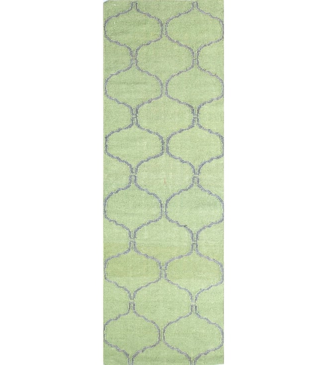 Jaipur RugsCarpet For Living room 2'6x8 Feet Green Wool Viscose Runner Geometric Stripes Rug