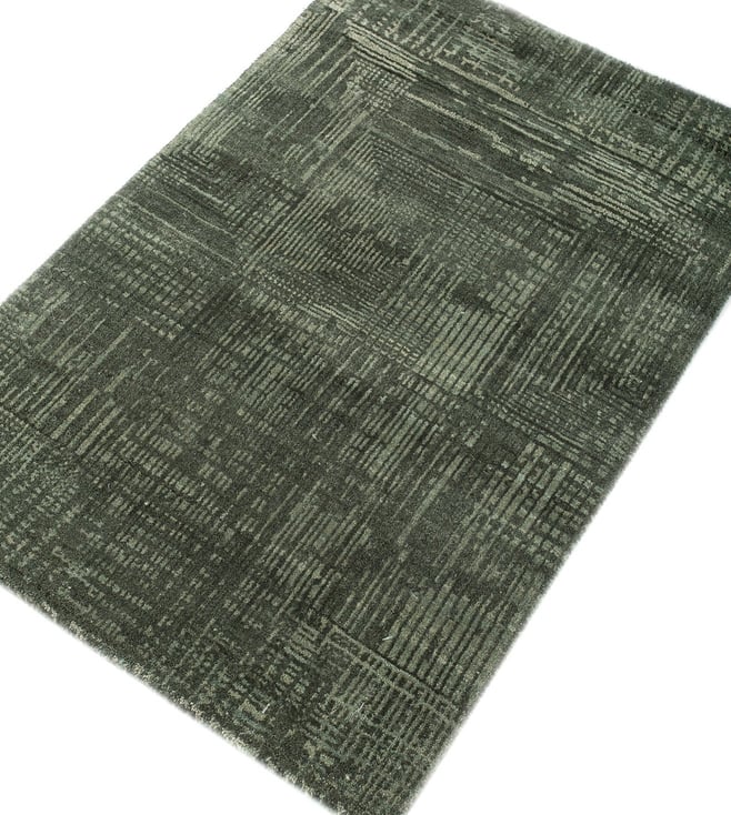 Jaipur RugsCarpet For Living room 2x3 Feet Green Wool Bamboo Silk Rectangle Abstract Rug