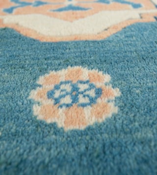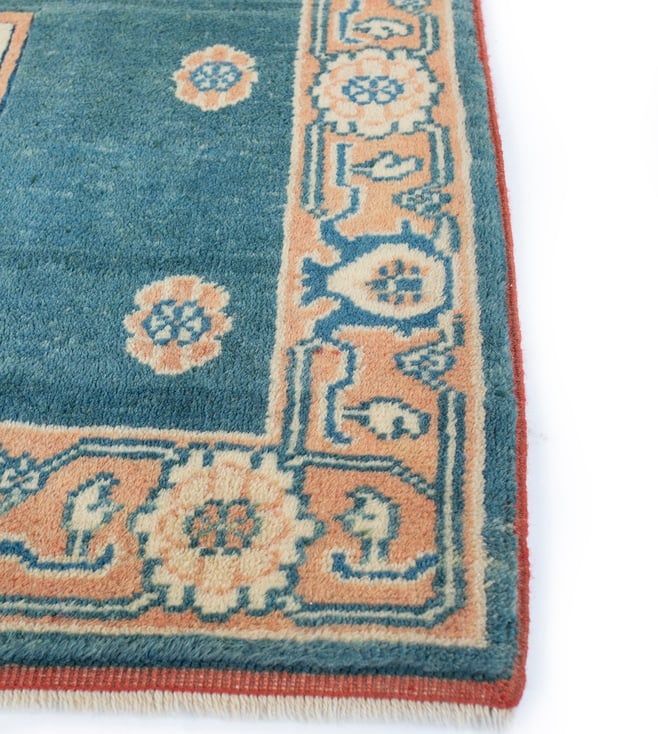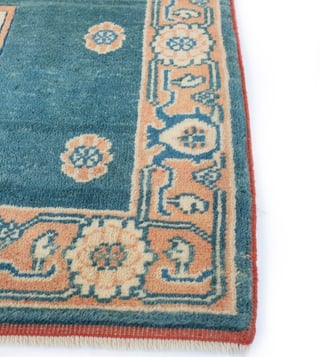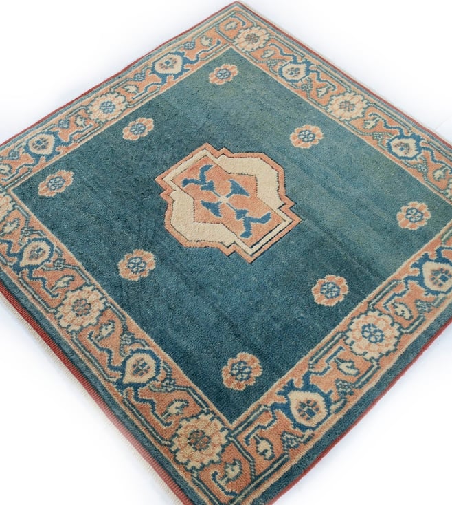 A symphony of azure hues, this Jaipur rug transforms your living room or bedroom into a haven of tranquility. Woven from the finest wool, its intricate patterns evoke the timeless beauty of Indian craftsmanship. The rectangular shape, measuring 3'6" x 3', provides a cozy focal point, while the soft, plush texture invites bare feet to sink in. At 5.78 kgs, it's substantial enough to anchor the space without feeling overwhelming. This rug is more than just floor covering it's a statement piece that whispers stories of tradition and elegance.