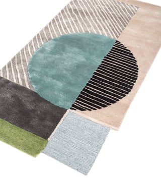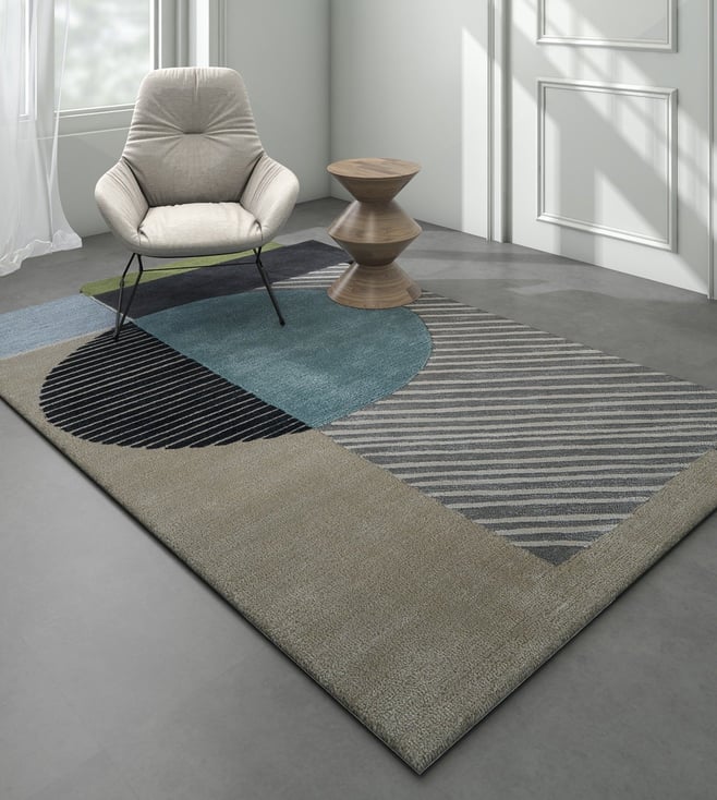 Jaipur RugsCarpet For Living room 3'6x6 Feet Blue Wool Viscose Irregular Geometric Stripes Rug