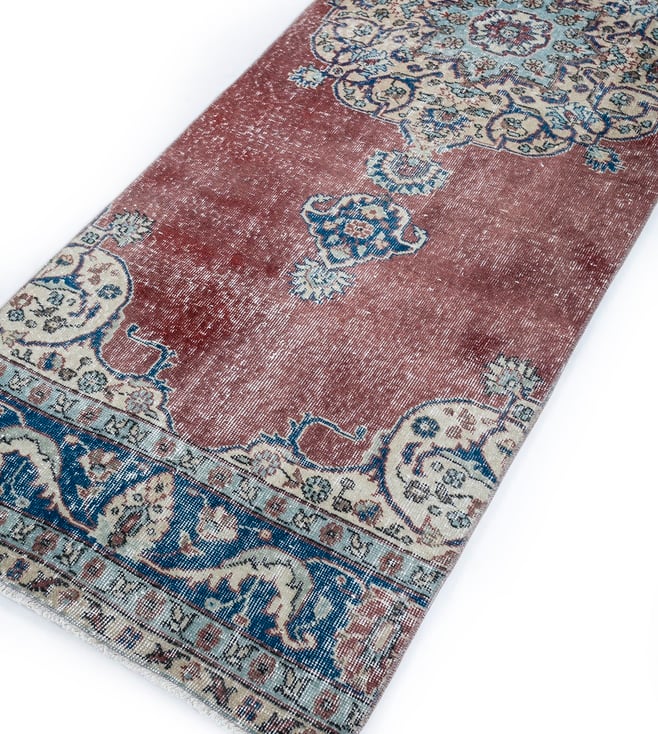 A vibrant splash of color, this hand-knotted wool runner from Jaipur Rugs transforms any space. Crafted with meticulous detail, the rich red hues dance across the 3x9'6' surface, adding a touch of regal elegance to your living room or bedroom. The intricate knotting technique creates a luxurious texture underfoot, while the durable wool ensures years of enjoyment. Weighing in at 9.9 kgs, this runner is a statement piece that commands attention and elevates your home decor.