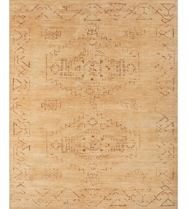Jaipur RugsCarpet For Living room 4x5 Feet Gold Wool Rectangle Moroccan Tribal Rug