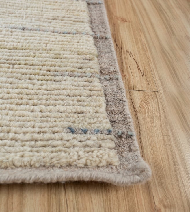 Jaipur RugsCarpet For Living room 4x5 Feet Ivory Wool Rectangle Moroccan Tribal Rug