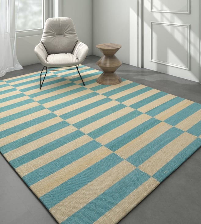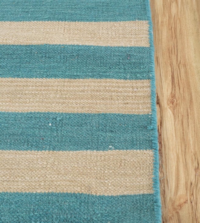 Create a zestful aura in your bedding space with this beautiful dhurrie. It is crafted from wool. Disclaimer: Product colour may slightly vary due to photographic lighting sources. Country of Origin - India.