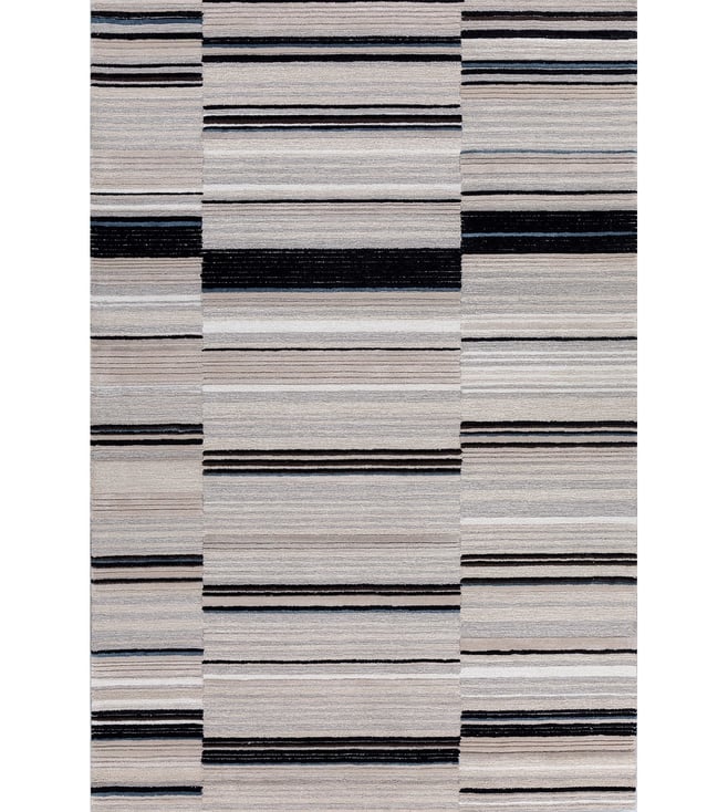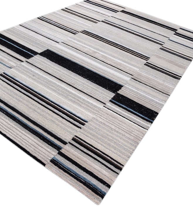 Jaipur RugsCarpet For Living room 4x6 Feet Grey Black Wool Viscose Rectangle Abstract Rug