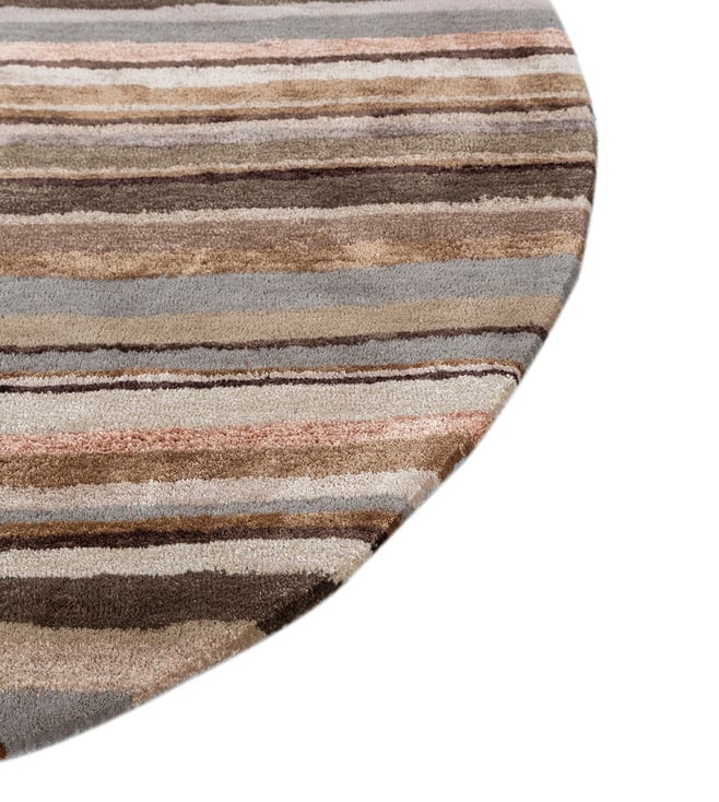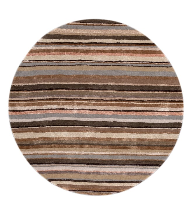 Jaipur RugsCarpet For Living room 5 round Feet Grey Black Wool Viscose Round Geometric Stripes Rug