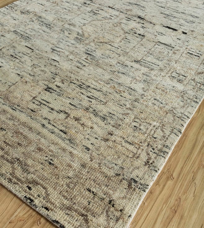 A symphony of beige and brown, this hand-woven wool rug from Jaipur transforms your living room or bedroom into a haven of warmth and sophistication. Its intricate patterns, woven with the finest wool, evoke a timeless elegance, while the earthy tones create a sense of calm and comfort. Measuring 5x8 feet, it's the perfect size to anchor your furniture and define your space. The rug's luxurious texture and substantial weight (11.2 kgs) add a touch of opulence, making it a statement piece that will be cherished for years to come.