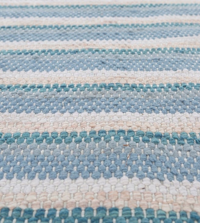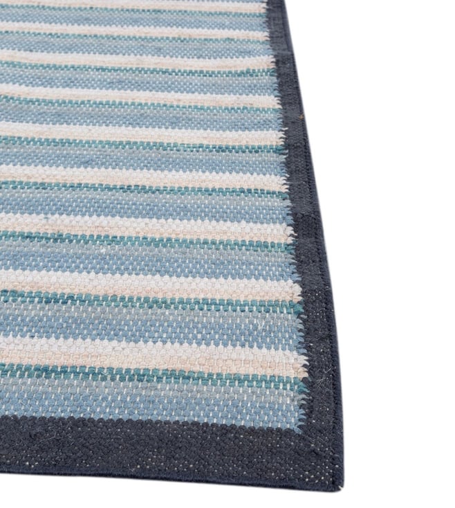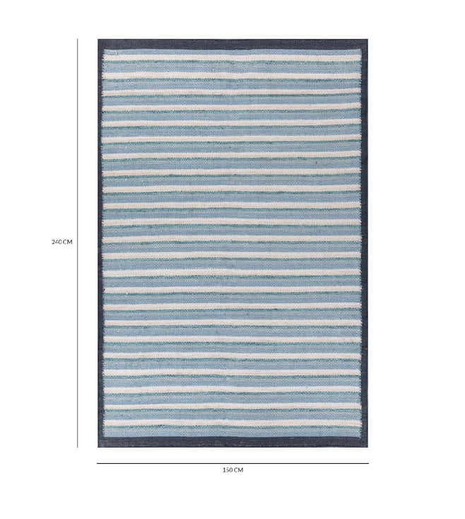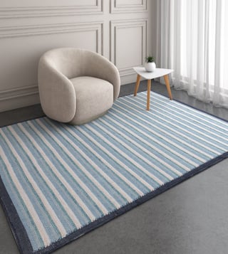 Jaipur RugsCarpet For Living room 5x8 Feet Blue Polyester Rectangle Geometric Stripes Rug