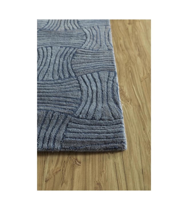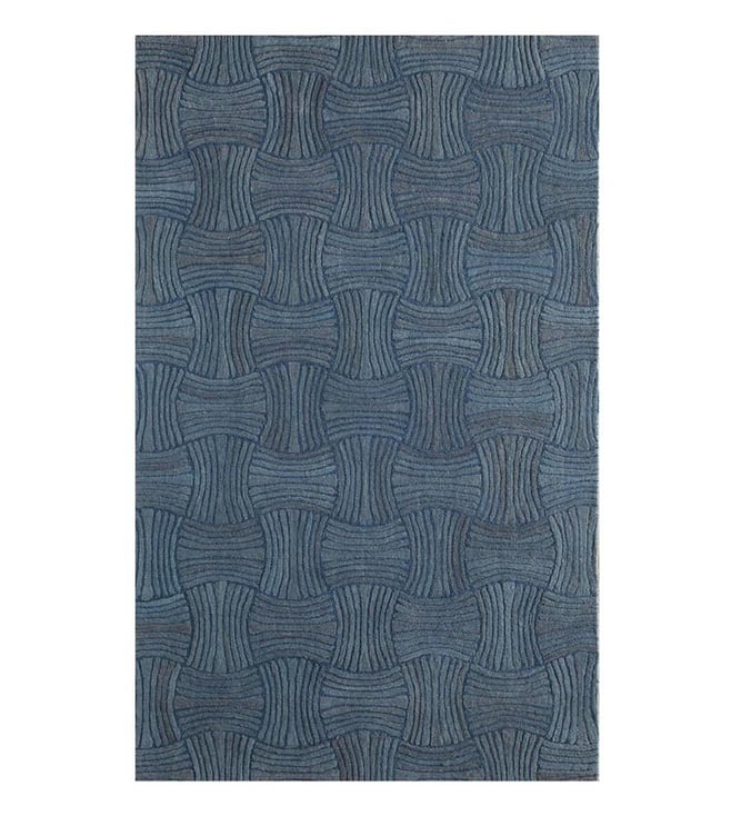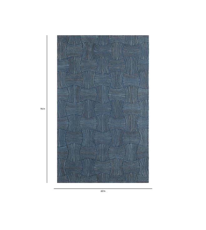 Jaipur RugsCarpet For Living room 5x8 Feet Blue Wool Rectangle Geometric Stripes Rug