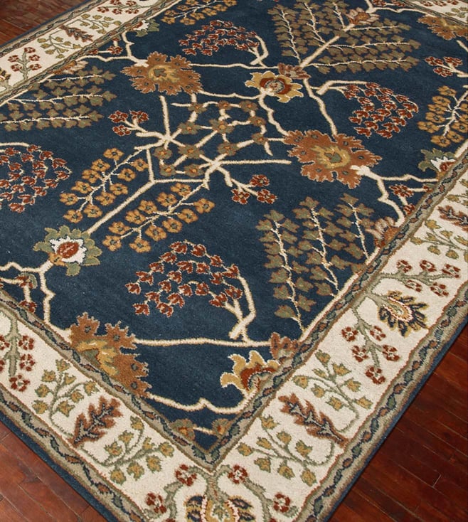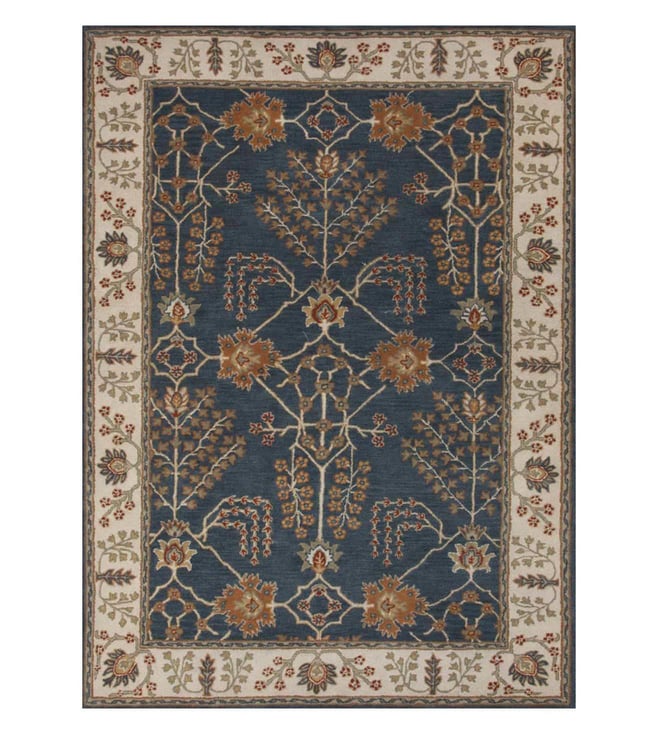 Jaipur RugsCarpet For Living room 5x8 Feet Blue Wool Rectangle Oriental Traditional Rug