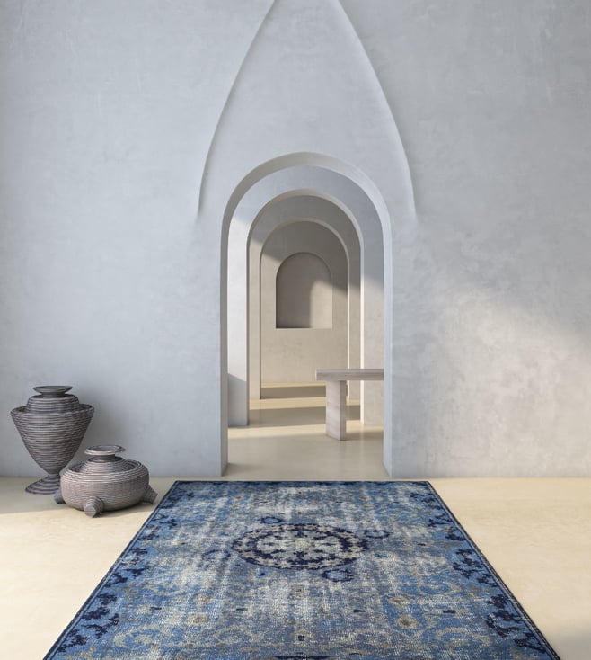 Jaipur RugsCarpet For Living room 5x8 Feet Blue Wool Rectangle vintage distressed Rug