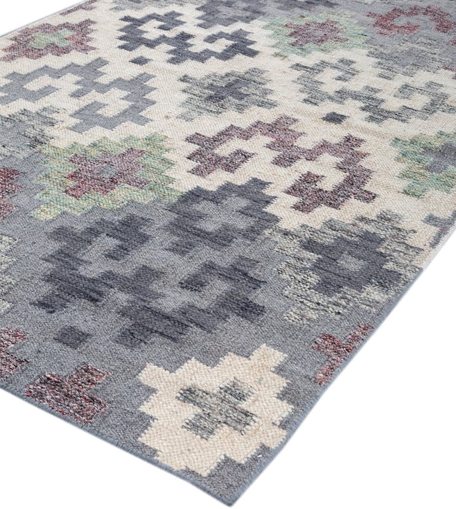 Embrace the artistry of Jaipur Rugs with this exquisite flat weave rug, meticulously crafted from a blend of luxurious wool and viscose. Its rectangular silhouette, measuring 5x8 feet, effortlessly complements both living room and bedroom spaces. The intricate patterns and vibrant hues infuse your home with a touch of bohemian elegance. Weighing 4.4 kgs, this rug offers a substantial feel underfoot, adding warmth and comfort to your d¿cor.