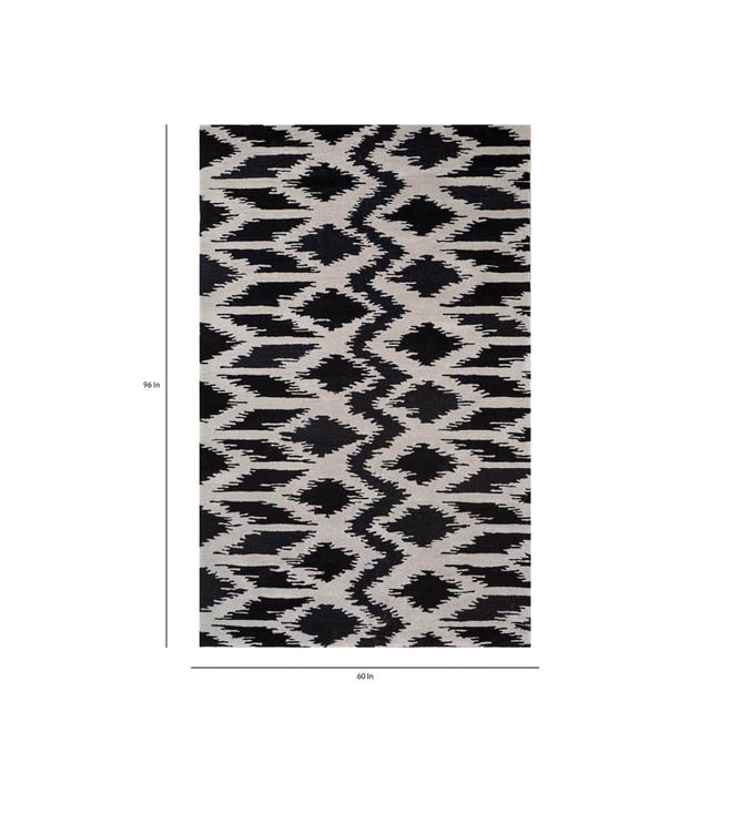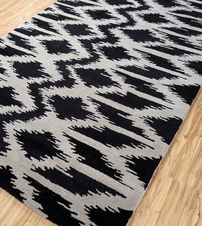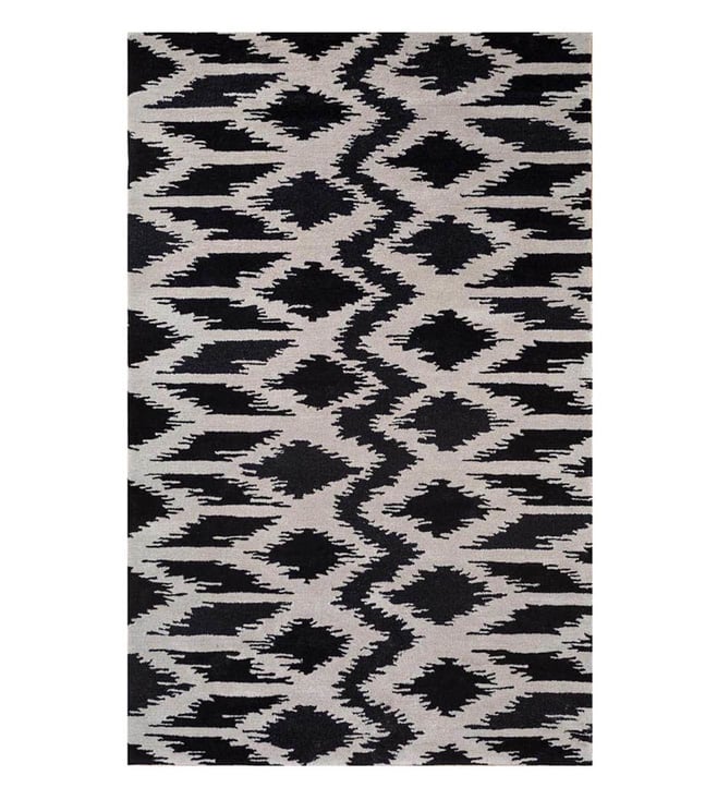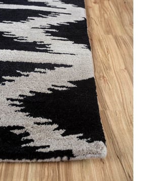 Jaipur RugsCarpet For Living room 5x8 Feet Grey Black Wool Viscose Rectangle Geometric Stripes Rug